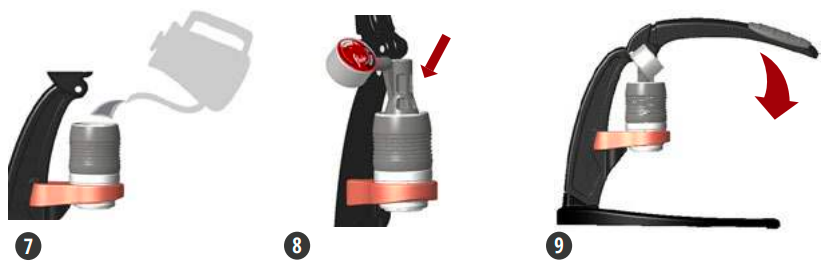 7. Napełnij cylinder wrzątkiem - Napełnij cylinder PRO 3 przez tłok tylko wrzątkiem.