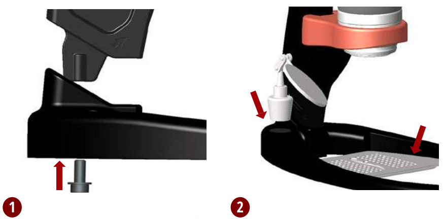 - Zresetuj tłok za pomocą kubka dozującego. Umieść cylinder na kubku dozującym i naciśnij.