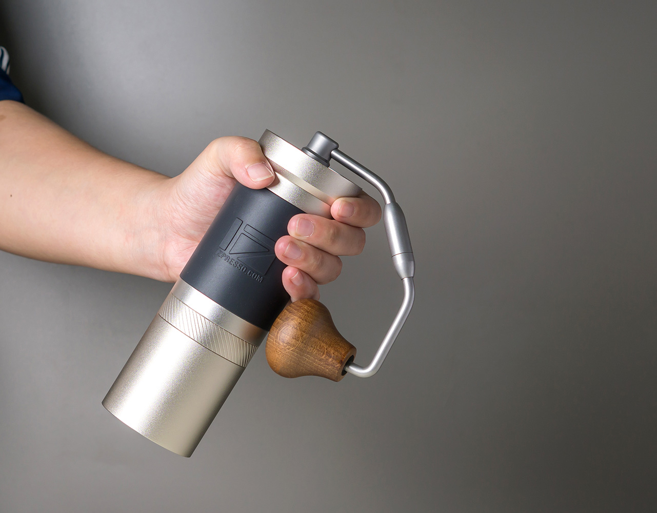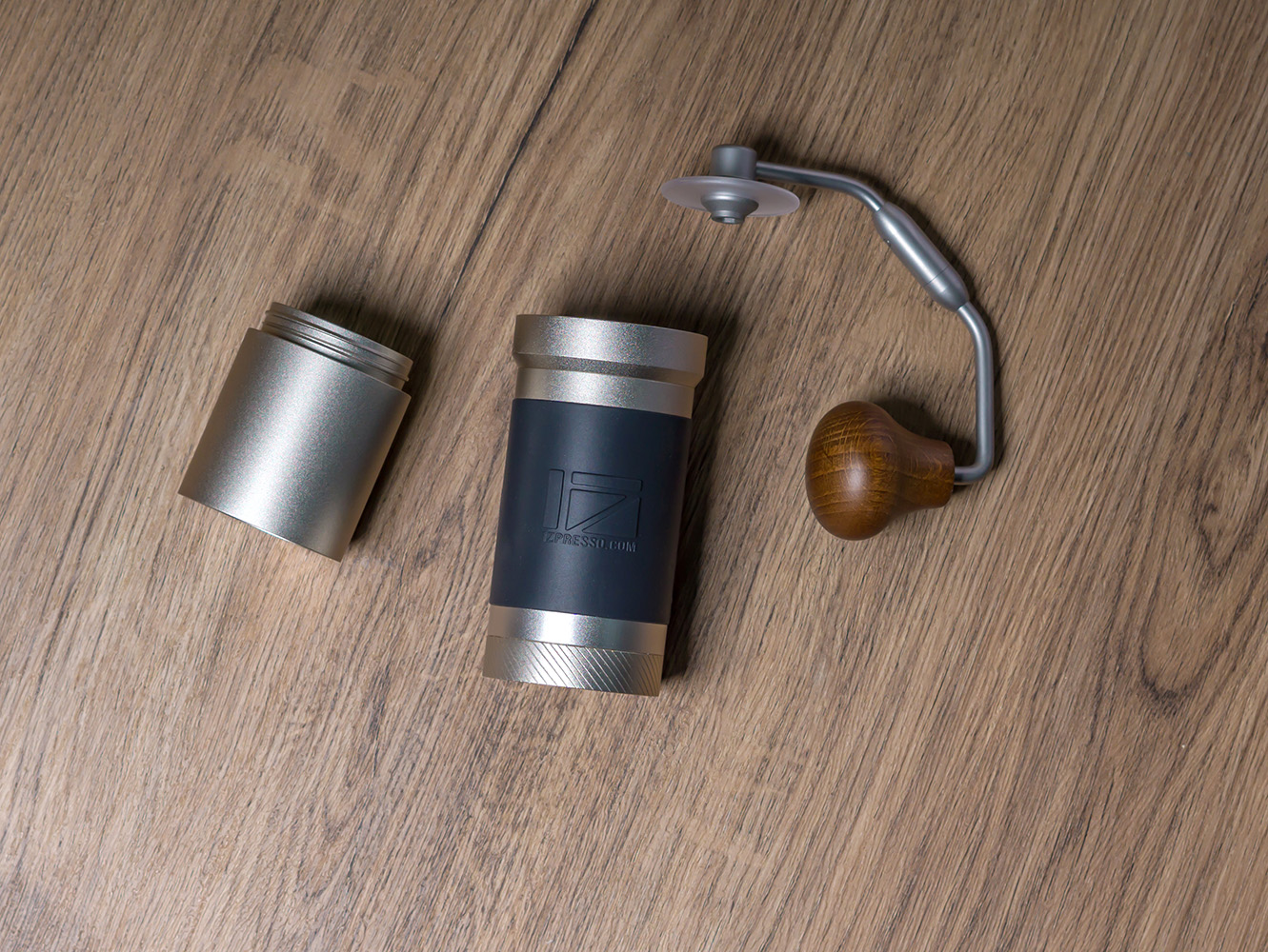 Młynek 1Zpresso JX PRO S jest wykonany jedynie z trwałych materiałów. Korpus jest wykonany ze stopu aluminium i stali nierdzewnej. Rączka jest drewniana.