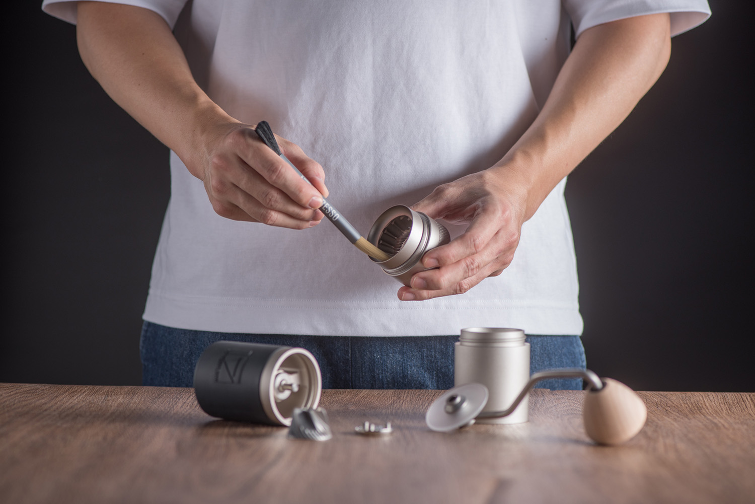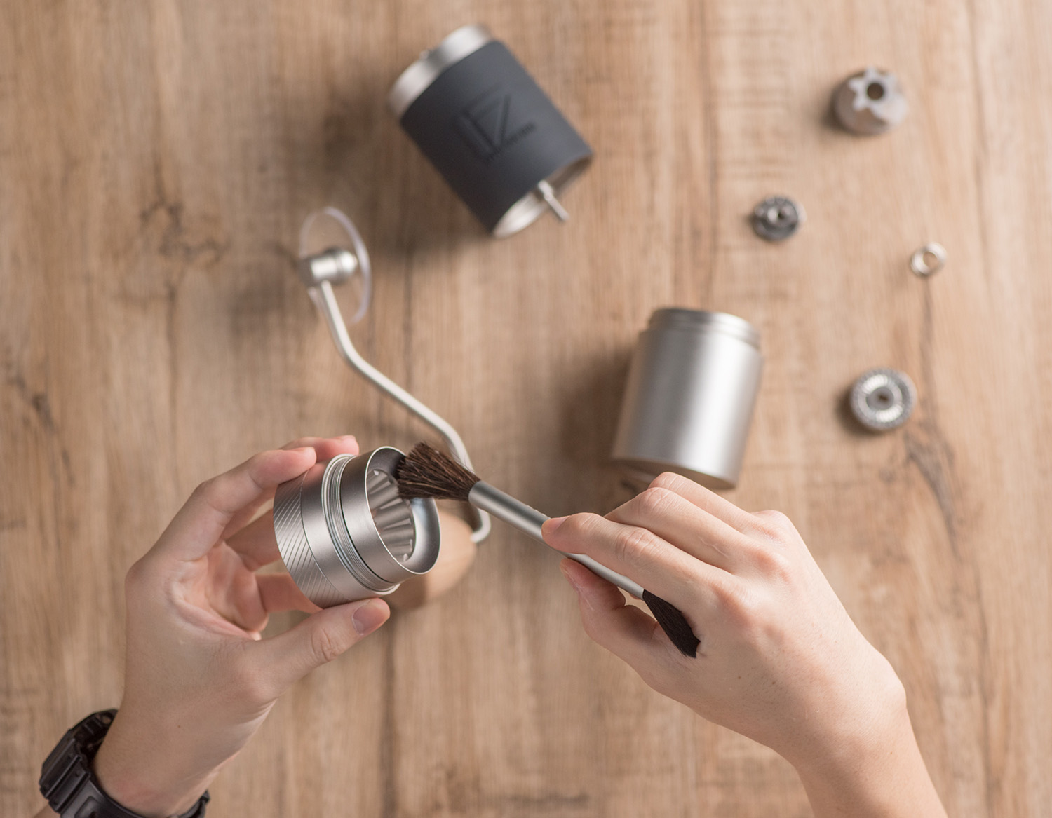 Młynek 1Zpresso JX jest wykonany jedynie z trwałych materiałów. Korpus jest wykonany ze stopu aluminium i stali nierdzewnej. Rączka jest drewniana.
