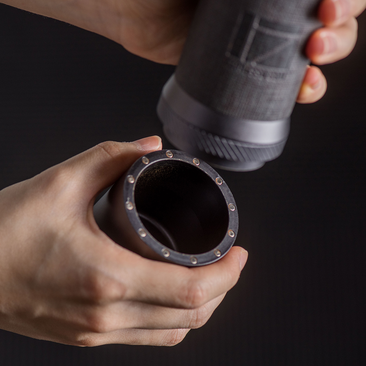 Pojemność pojemnika to 35-40 gramów, co jest wystarczającą pojemnością do pomieszczenia większej ilości zmielonej kawy. Dzięki zastosowanemu magnesowi można pojemnik łatwo przymocować do ekspresu. Zmieloną kawę można ubić przez otwór w dolnej części, odpowiedni do portafiltra 51 i 58 mm.