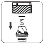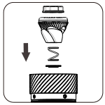 Zamontuj elementy we właściwej kolejności: dolna pokrywa łożyska (wypukłą stroną zwróconą w stronę łożyska), sprężynę, zadzior i pokrętło regulacyjne. |