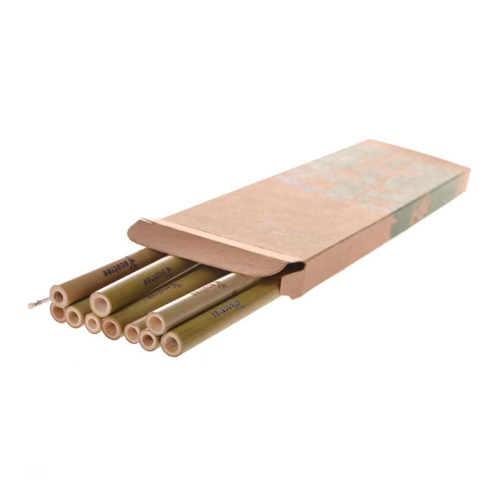 Zestaw zawiera 10 bambusowe słomki. Wyprodukowane w 100% z bambusa, bez farb i lakierów.