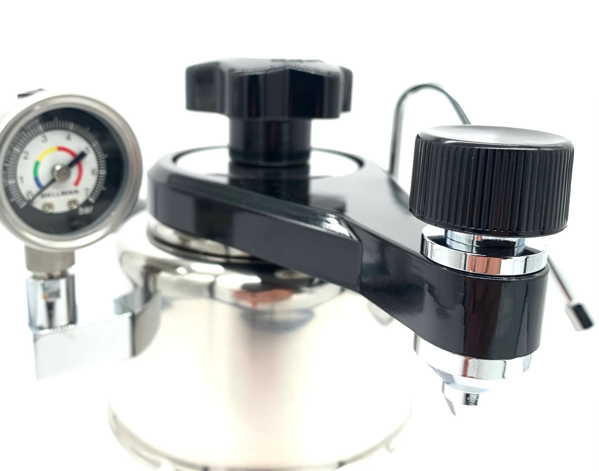 Model CX-25P jest wyposażony w zintegrowany manometr, który pokazuje w czasie rzeczywistym ciśnienie w bojlerze – dzięki temu dokładnie wiadomo, kiedy rozpocząć ekstrakcję i kiedy para jest gotowa do spieniania mleka.