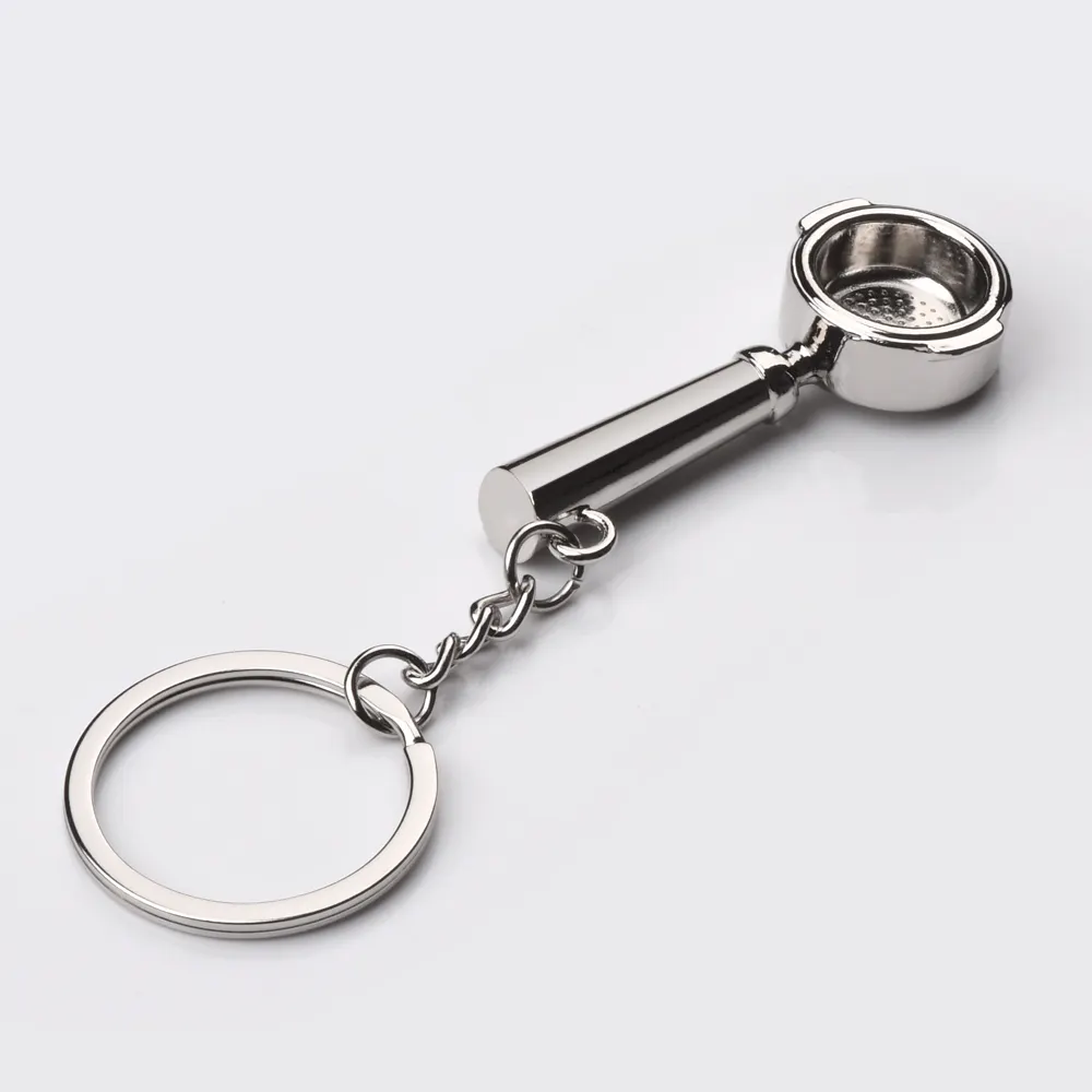 Metalowy brelok w kształcie uchwytu filtra. Świetny dodatek dla każdego baristy.