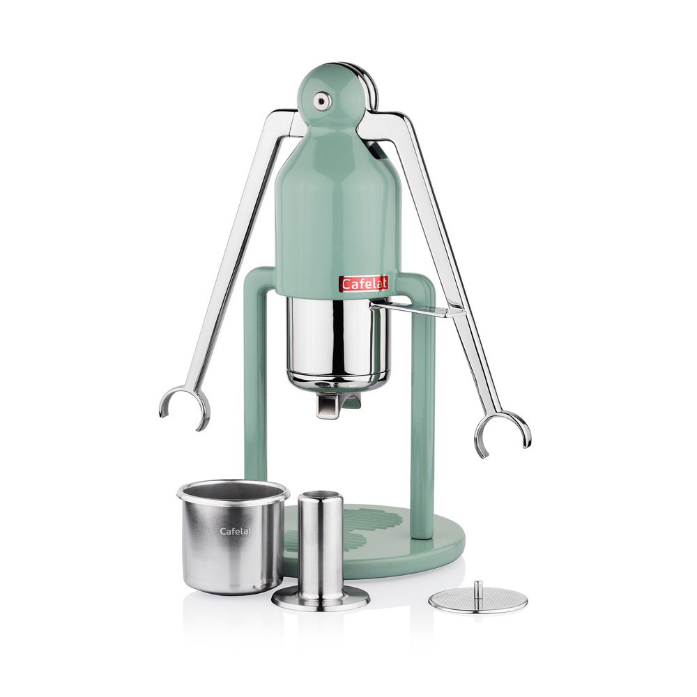 Robot to mały, bardzo dobrej jakości ręczny ekspres, który przygotowuje prawdziwe espresso. Wykorzystuje parę elementów, bez skomplikowanej elektroniki, plastiku czy elementów, które się z czasem zepsują. Wyprodukowany jest z wysokiej jakości materiałów, przeważnie ze stali nierdzewnej.