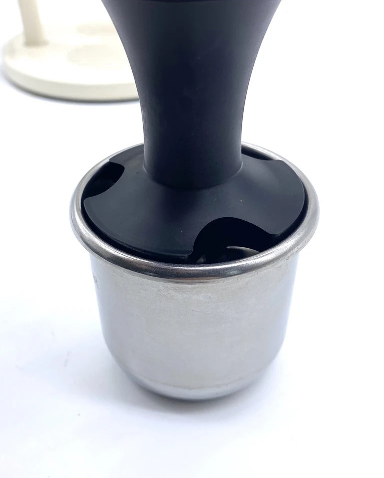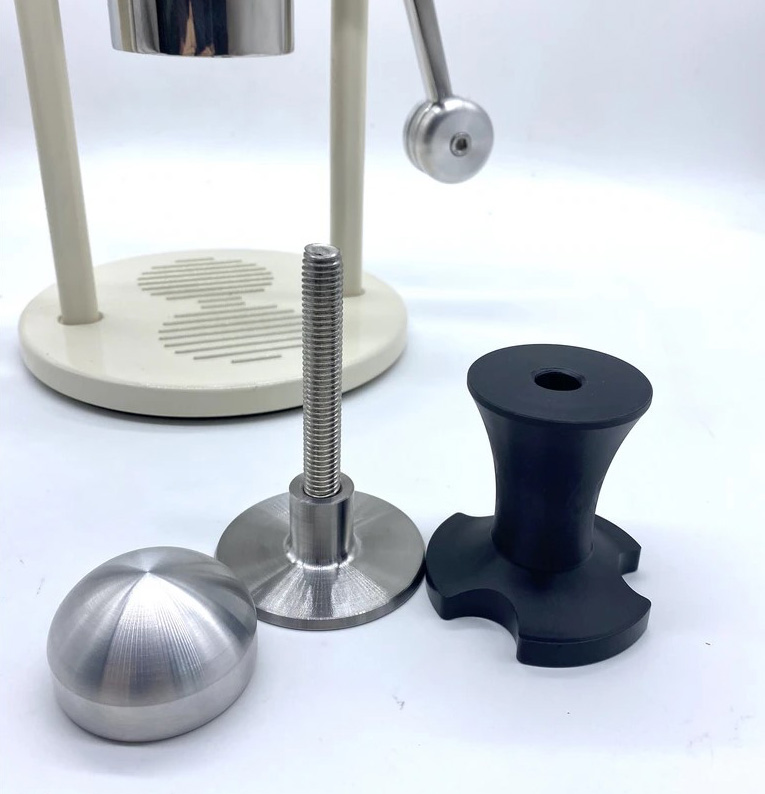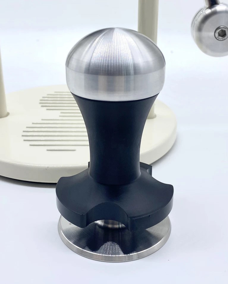 Precyzyjne wykonany tamper pasuje do głębokiego kosza ekspresu Cafelat Robot. Wysokość tampera jest regulowana poprzez wkręcanie śrubki.