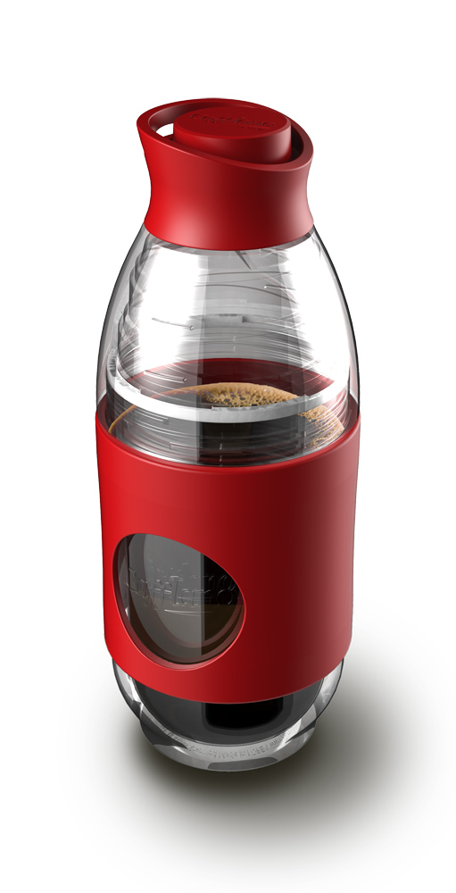 Wszystkie części ekspresu tworzą plastikową butelkę, którą można rozłożyć na 4 części: wieczko, dripper, uchwyt i kubek.
