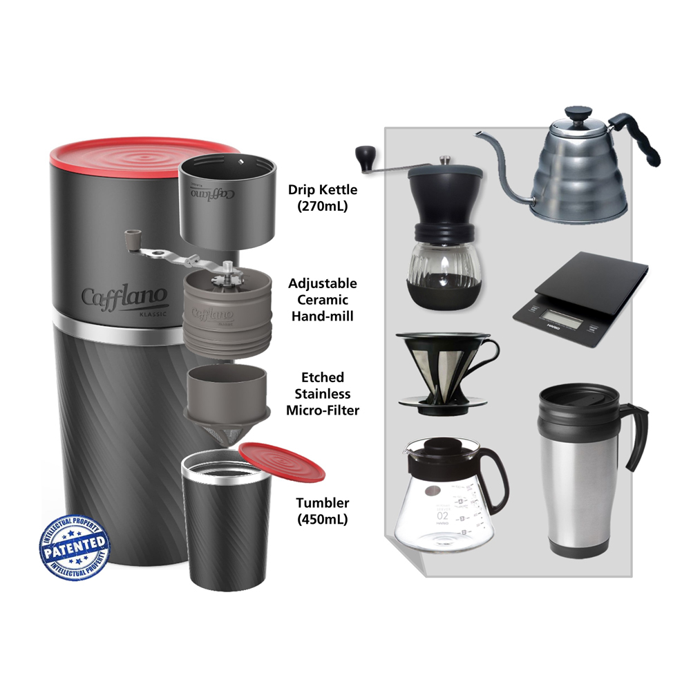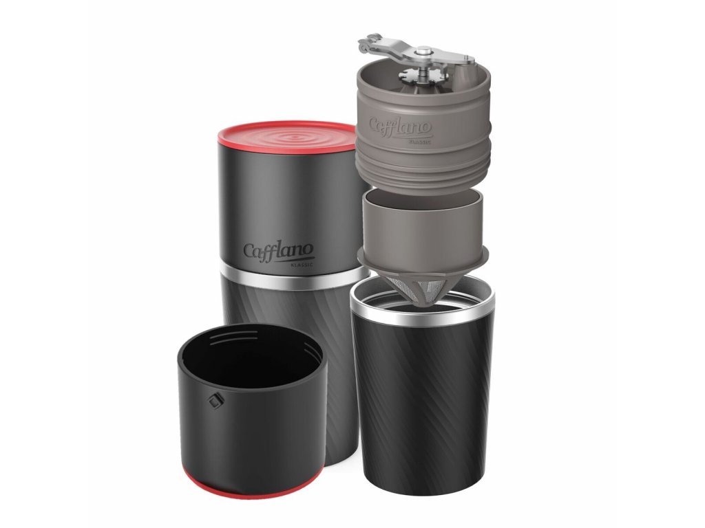 Przenośny składany ekspres Cafflano przygotuje filtrowaną kawę w podróży.