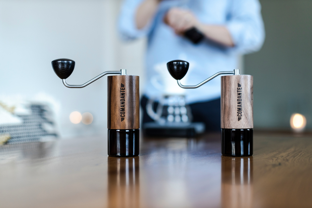 Dobrej jakości, ręczny młynek do kawy od sprawdzonego producenta Comandante w wersji C40 MK4 Nitro Liquid Amber oferuje mnóstwo innowacji oraz ulepszeń dla jeszcze bardziej doskonałego doświadczenia z mielenia kawy.