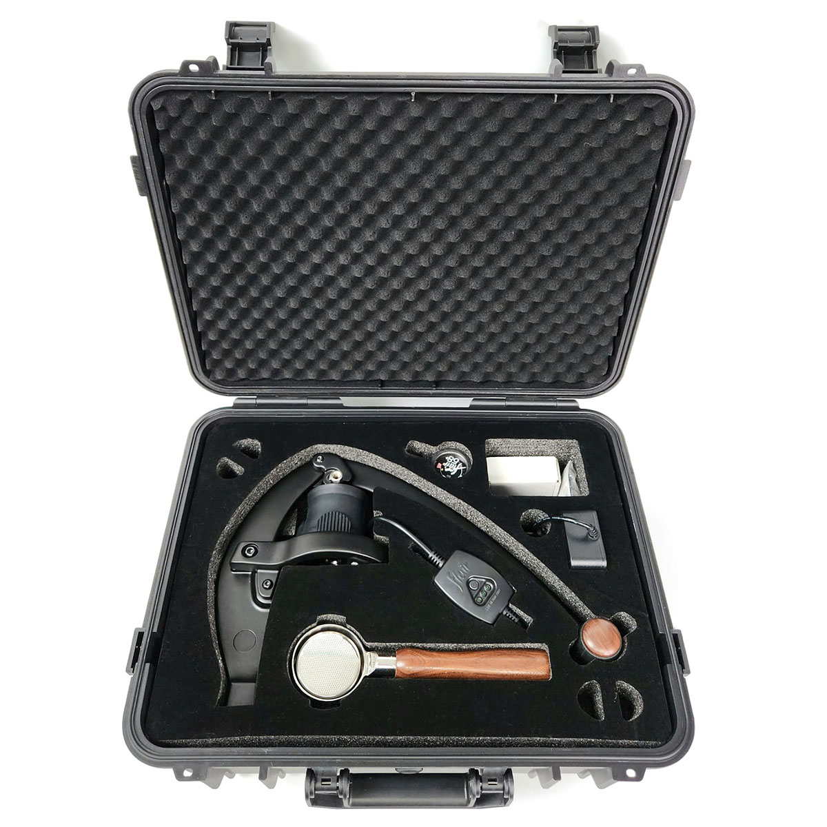Twardy futerał podróżny ochroni Twój Flair 58 przed kurzem, wgnieceniami i innymi uszkodzeniami. Teraz możesz zabrać Flair 58, 58x lub 58 Plus w dowolne miejsce, aby zaparzyć pyszne, ręcznie robione espresso.