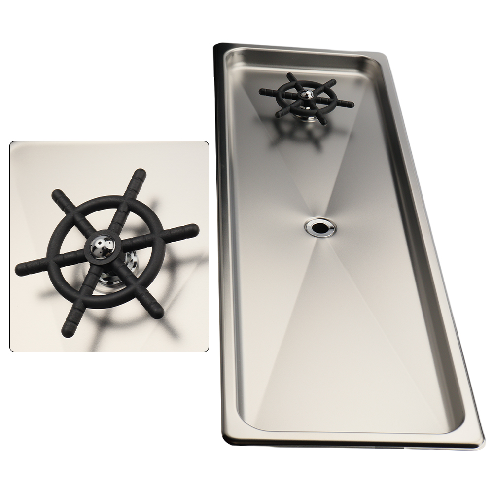 Płukanka do szklanek lub filiżanek wyposażona w wysokociśnieniową, obrotową dyszę o dużej skuteczności czyszczenia. Posiada ociekach. Odpowiednia do zabudowania na pulpicie roboczym.