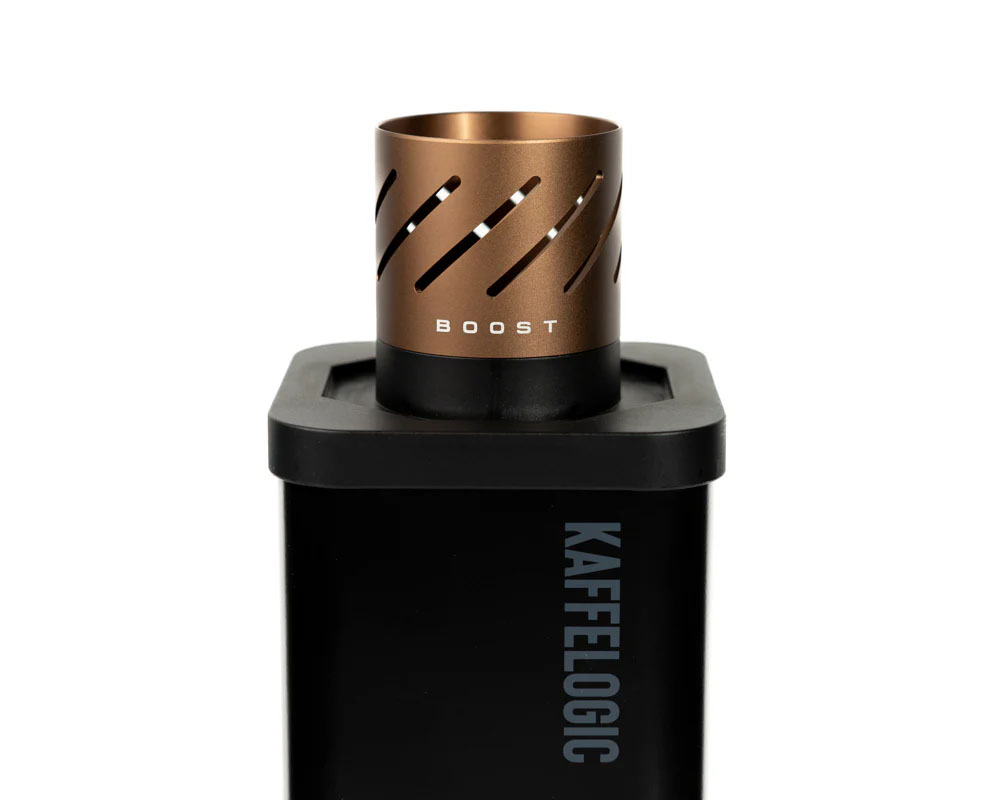 Ten zestaw promocyjny łączy zaawansowaną domową palarkę Kaffelogic Nano7 oraz rozszerzenie Boost Kit. Zestaw Boost Kit zawiera dwa aluminiowe adaptery oraz aktywację oprogramowania, które zwiększają pojemność palarki Nano 7 do porcji od 50 g do 200 g. System automatycznie dostosowuje profile cieplne i przepływ powietrza do wybranej ilości kawy.