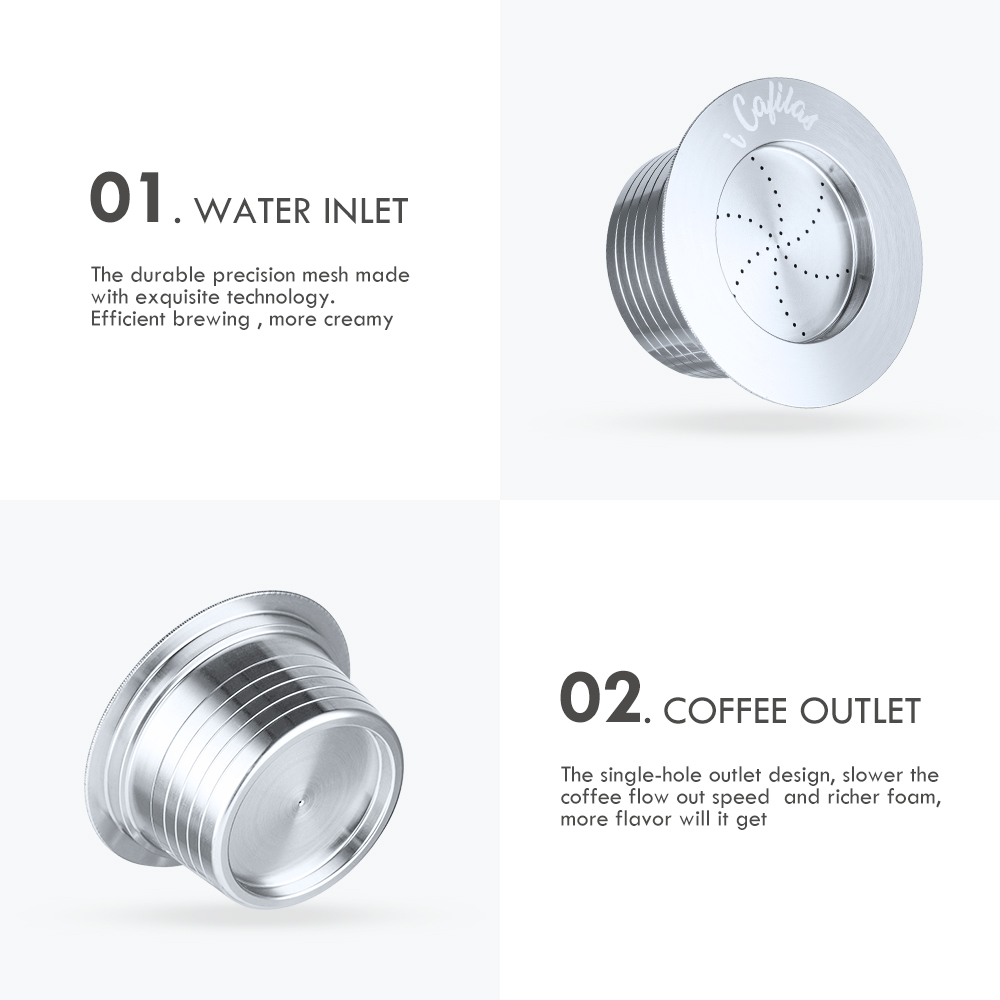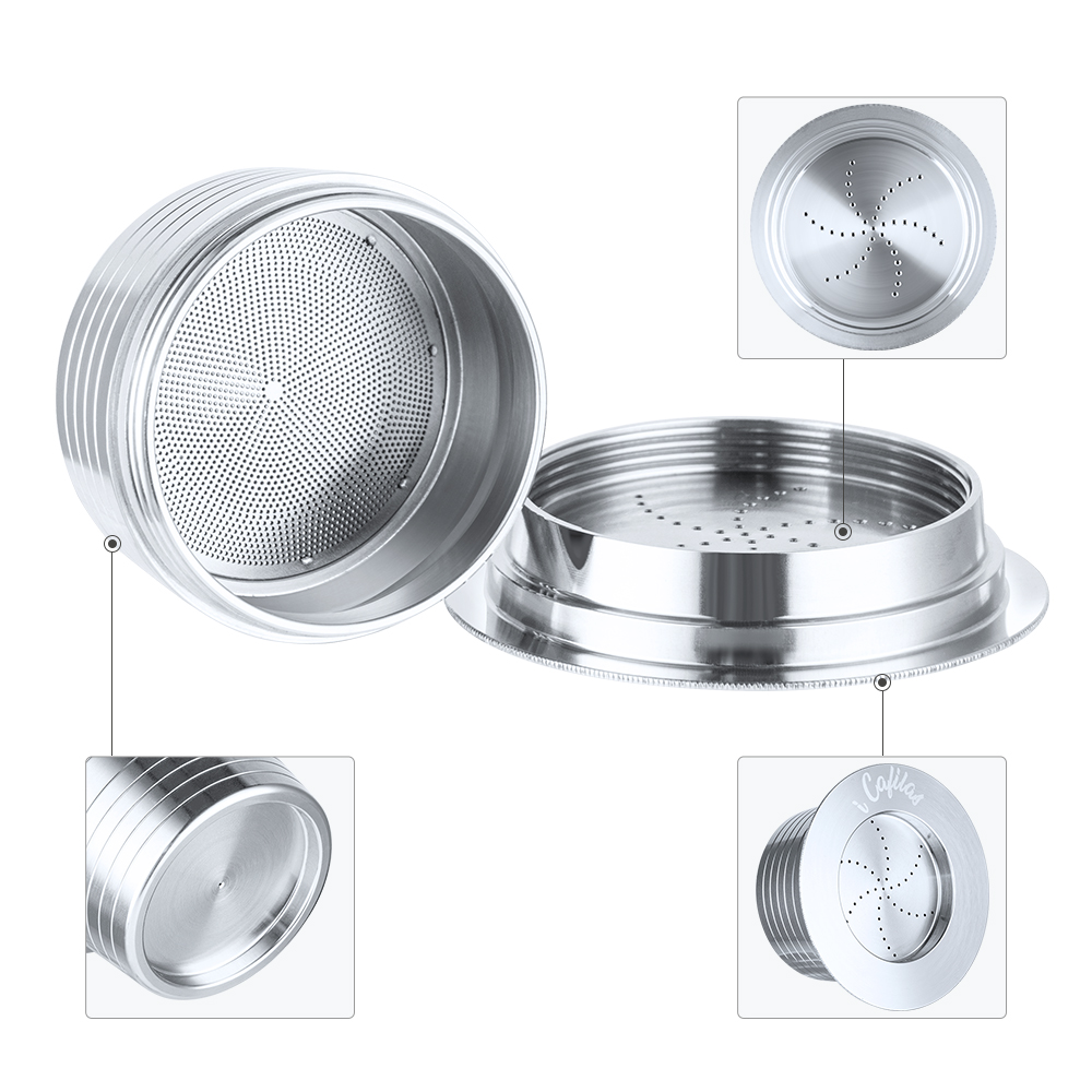 Opakowanie: 1x nierdzewna kapsułka, 1x nierdzewny filtr, 1x nierdzewne wieczko, 1x plastikowa łyżeczka z płaskim dnem do ubijania kawy w kapsułce, instrukcja obsługi.