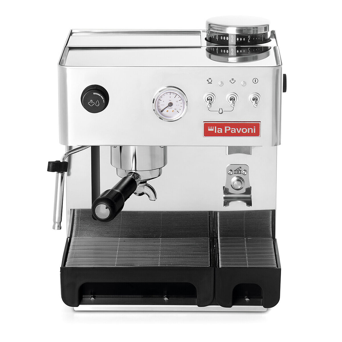 - Jakość wykonania - Obudowa ekspresu wykonana jest z polerowanej stali nierdzewnej, typowej dla marki La Pavoni