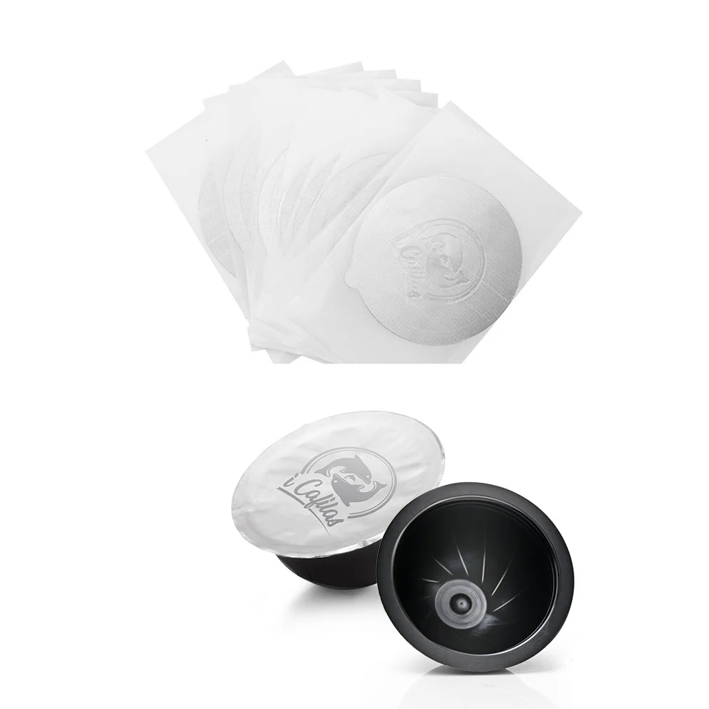 Te aluminiowe nasadki samoprzylepne pozwalają na ponowne wykorzystanie wyczyszczonych, jednorazowych kapsułek dla Nespresso Vertuo®.
