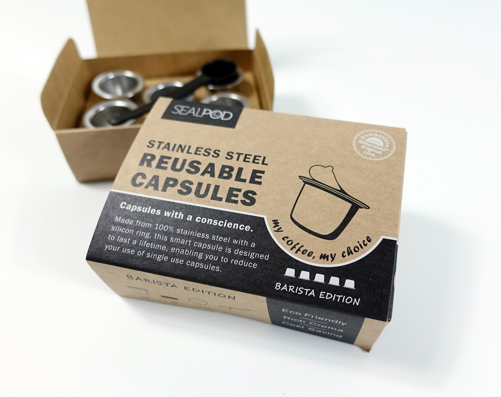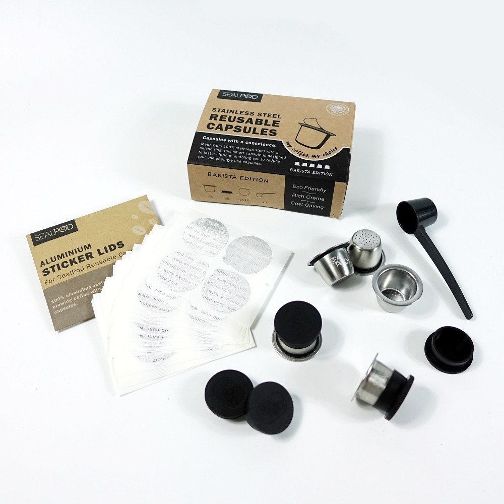 To opakowanie SEALPOD umożliwi stworzenie własnych, wykonanych z ekologicznych materiałów oraz wysokiej jakości, kapsułek do ekspresów Nespresso ® . Dzięki temu zestawowi zrobisz 5 kapsułki do napełniania.