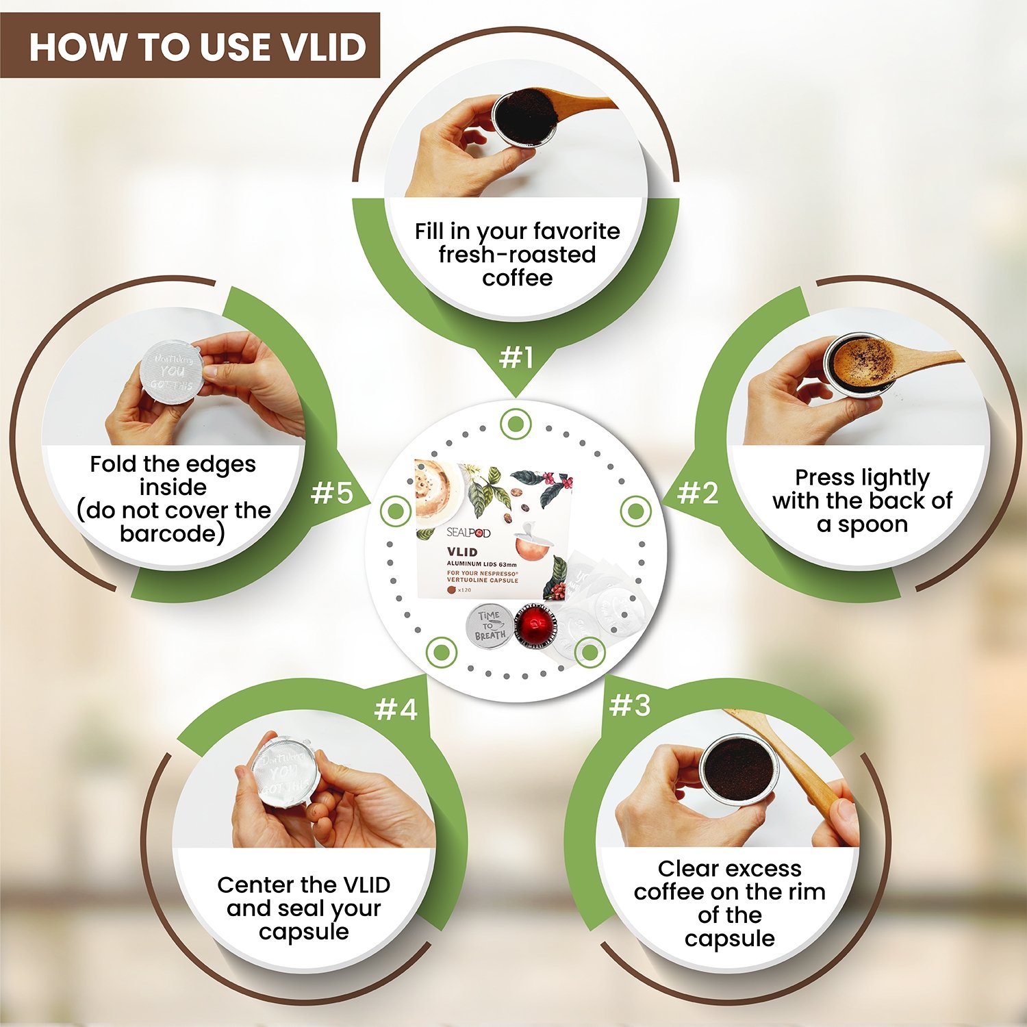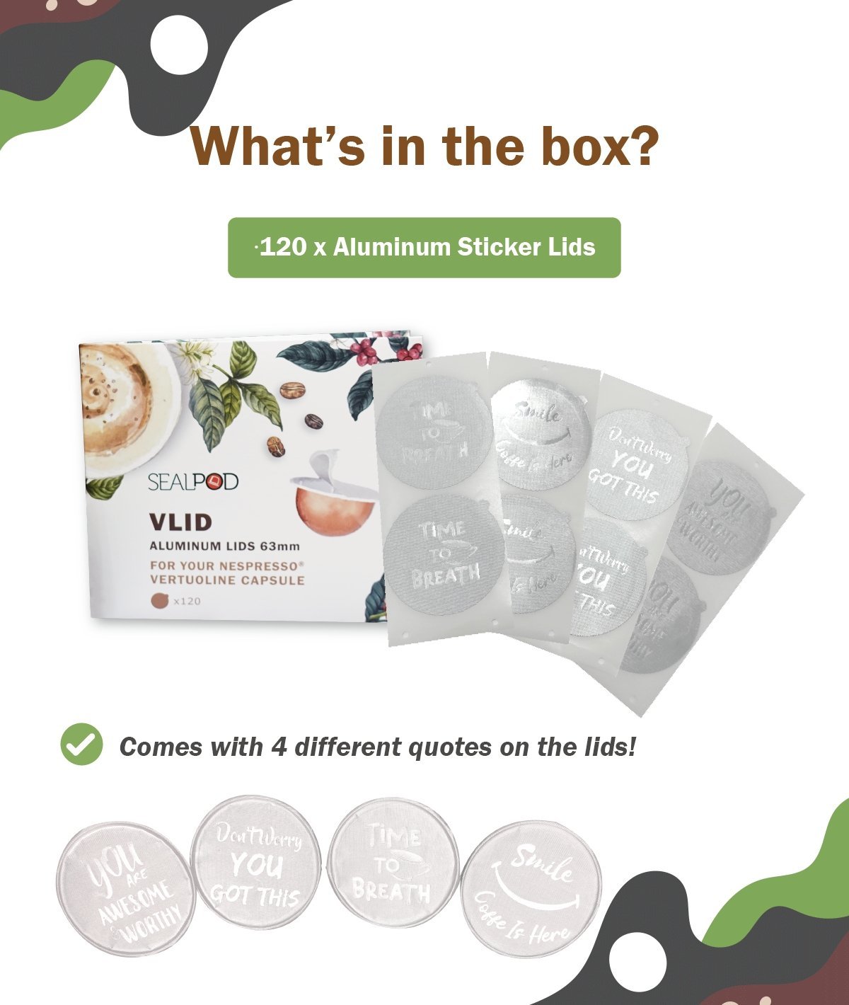 Dzięki tym samoprzylepnym aluminiowym wieczkiem możesz wielokrotnie używać jednorazowych kapsułek do Nespresso Vertuo.