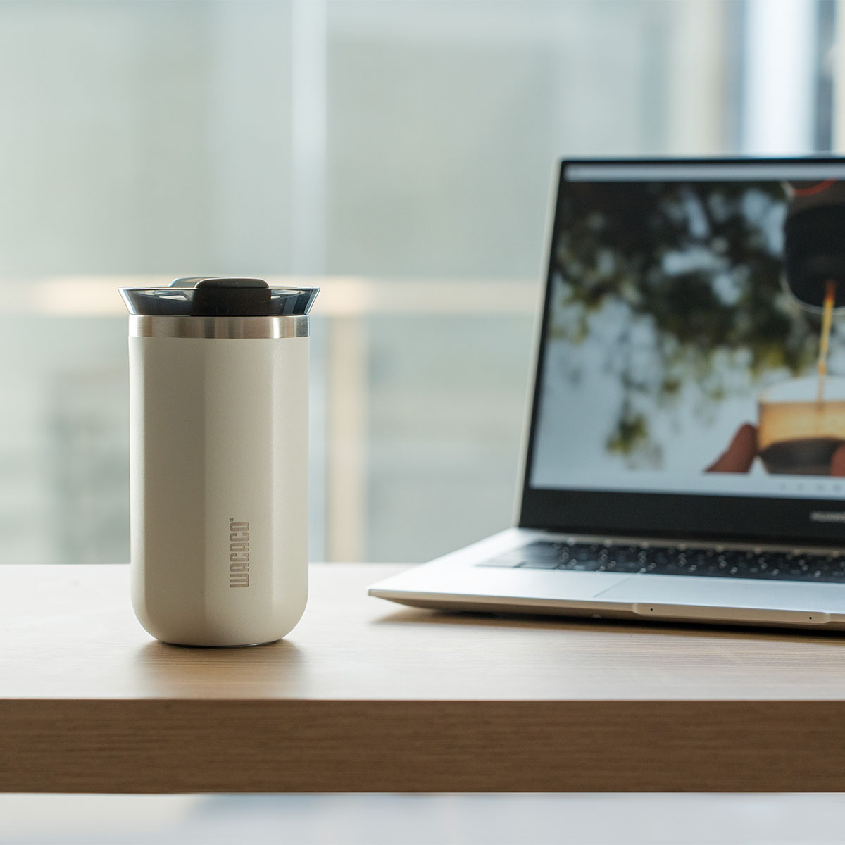 Termokubek Octaroma od Wacaco. Pojemność: 300 ml. Zmieści się do większości samochodowych uchwytów na kubek. Utrzyma temperaturę napoju do 5 godzin.