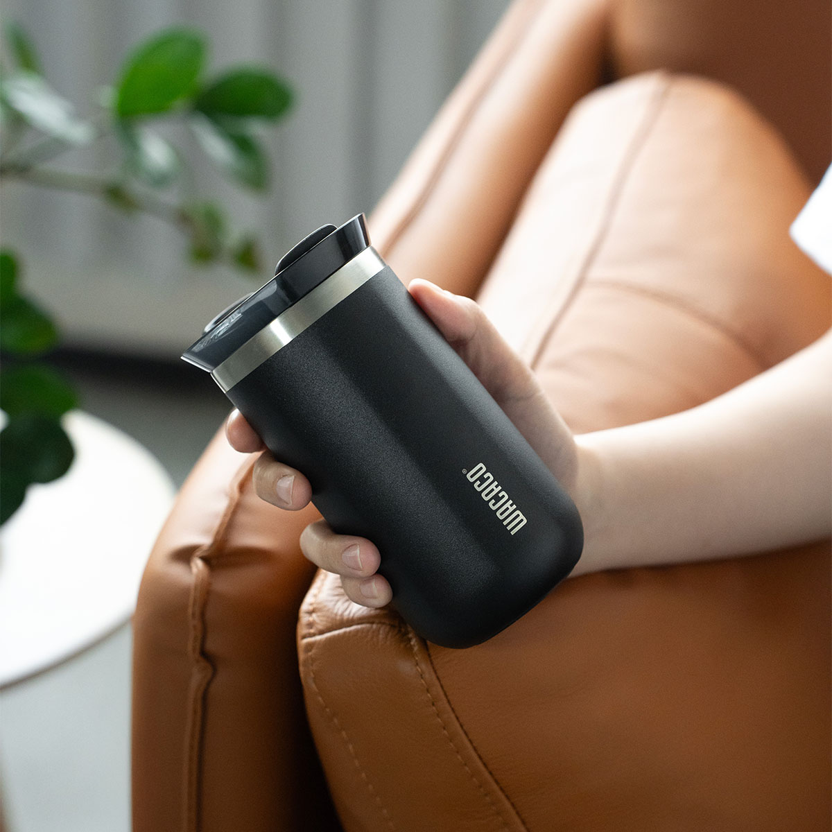 Termokubek Octaroma od Wacaco. Pojemność: 300 ml. Zmieści się do większości samochodowych uchwytów na kubek. Utrzyma temperaturę napoju do 5 godzin.