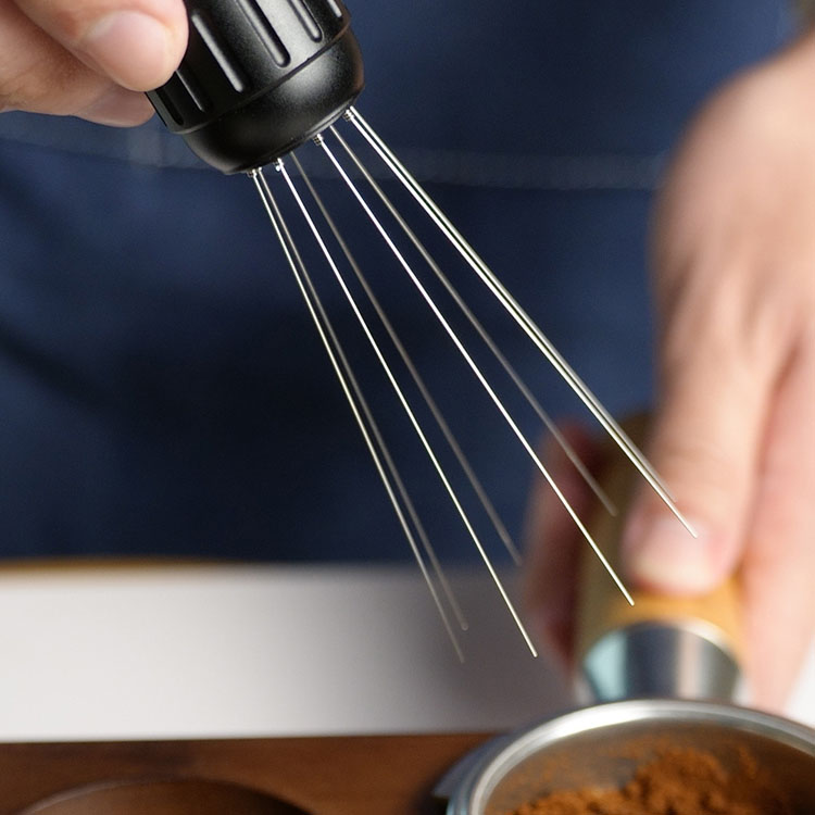 Elegancki dystrybutor igłowy, tzw. needle distributor / WDT tool, to nieocenione narzędzie dla każdego barista, który chce uzyskać idealnie równomierną ekstrakcję espresso. Dzięki 8 cienkim igłom zapewnia on dokładne i równomierne rozprowadzenie zmielonej kawy w uchwycie filtra, eliminując grudki i zmniejszając ryzyko powstawania kanalików. Rezultatem jest bardziej stabilny przepływ i pełniejszy smak espresso.