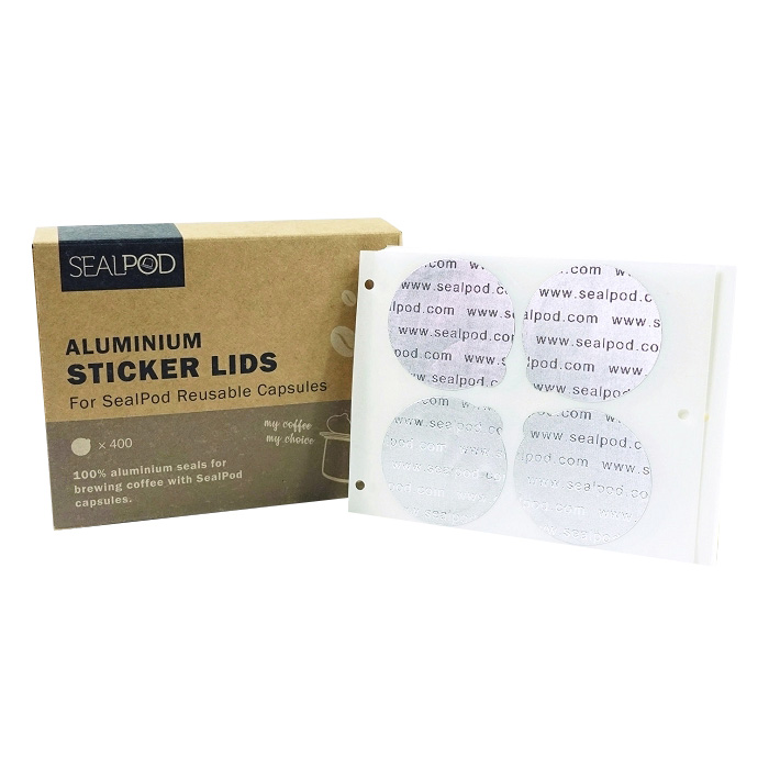 Zamienne wieczka 400 sztuk do kapsułek Sealpod, można je nalepiać nie tylko na jednorazowe kapsułki, ale również na plastikowe kapsułki do napełniania.