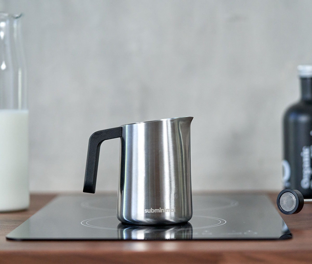 Subminimal FlowTip to dzbanek na mleko o nowoczesnym, stylowym i eleganckim wyglądzie. Aby podgrzać mleko do idealnej temperatury (55 - 65°C) można używać go bezpośrednio na kuchence gazowej lub elektrycznej (na indukcji tylko z użyciem reduktora/płyty do indukcji).