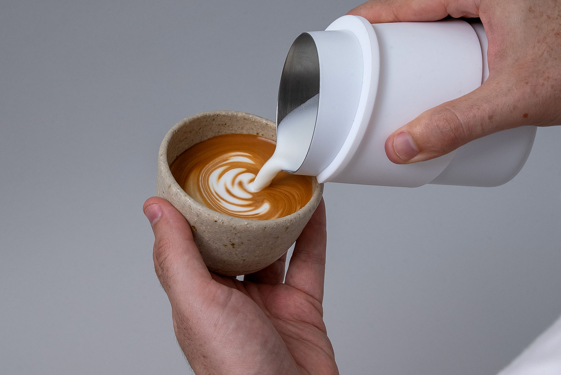 Zawartość opakowania: Dzbanek na mleko z końcówką Flow, certyfikat autentyczności, kod dostępu do kursu Latte Art Master Class.