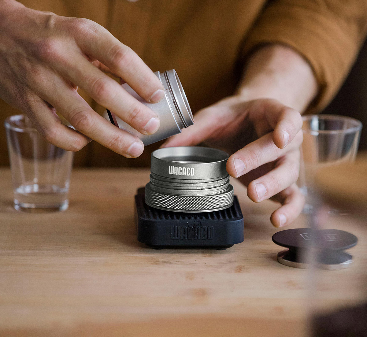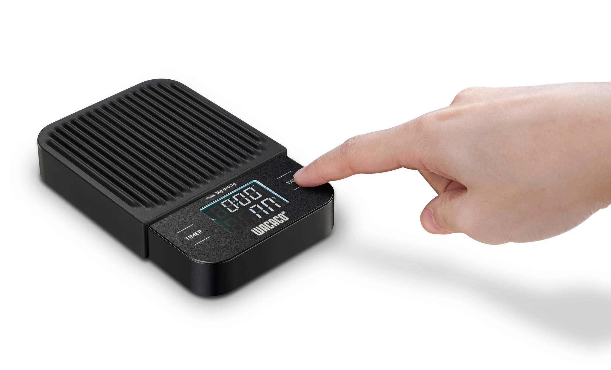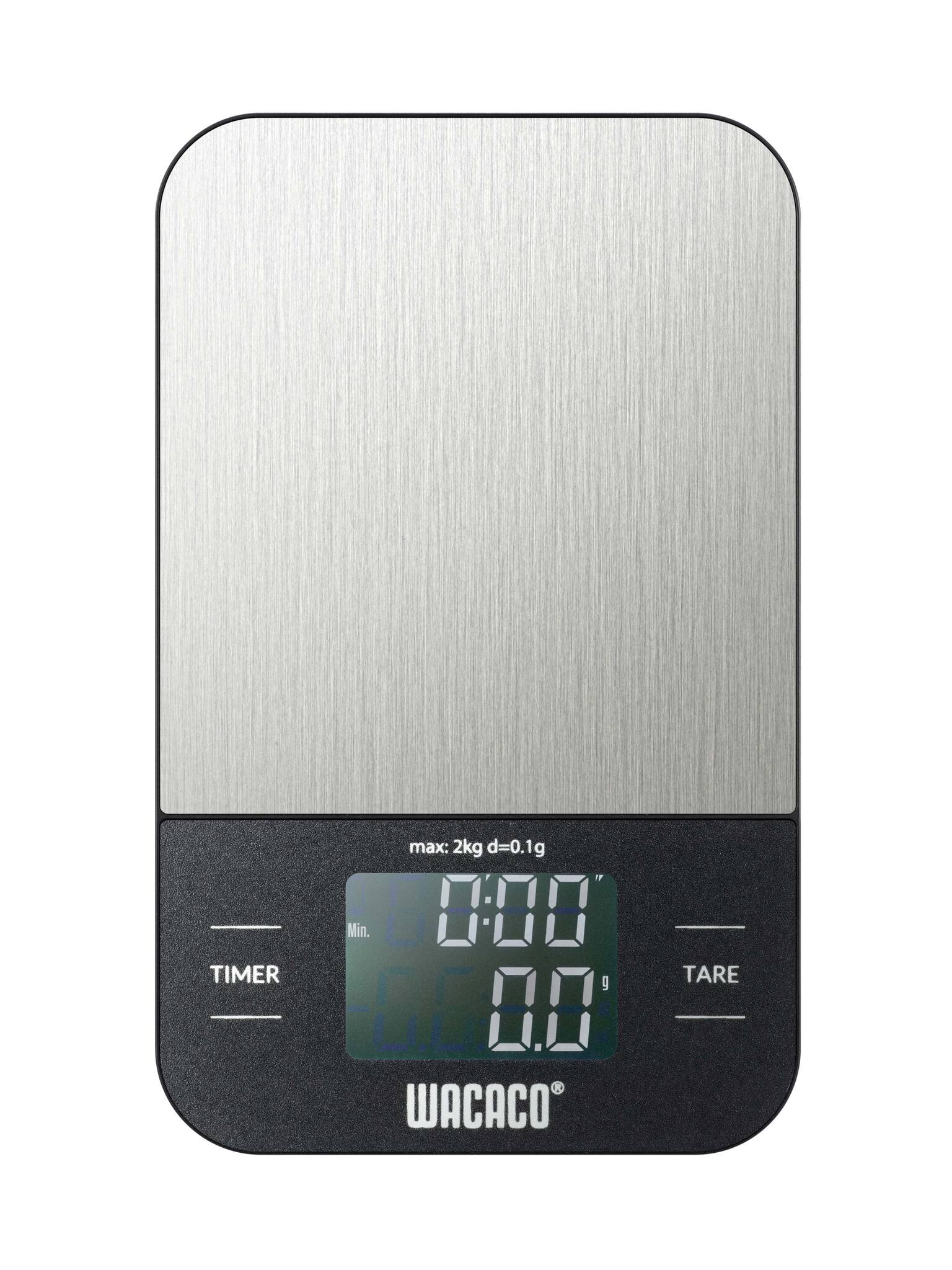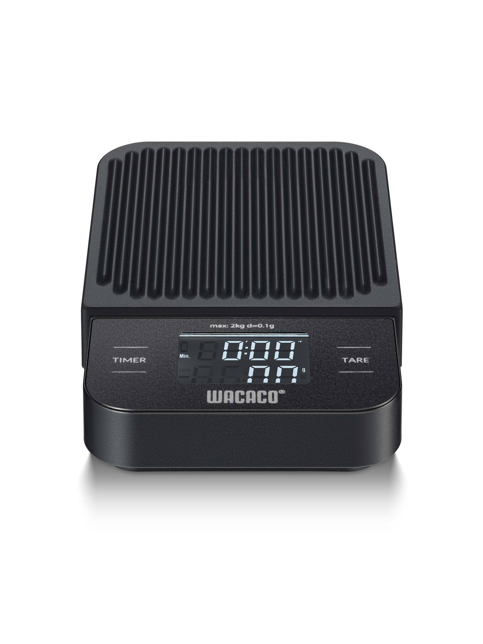 Kompaktowa waga cyfrowa Wacaco o dokładności do 0,1g i zakresie ważenia do 2 kg.