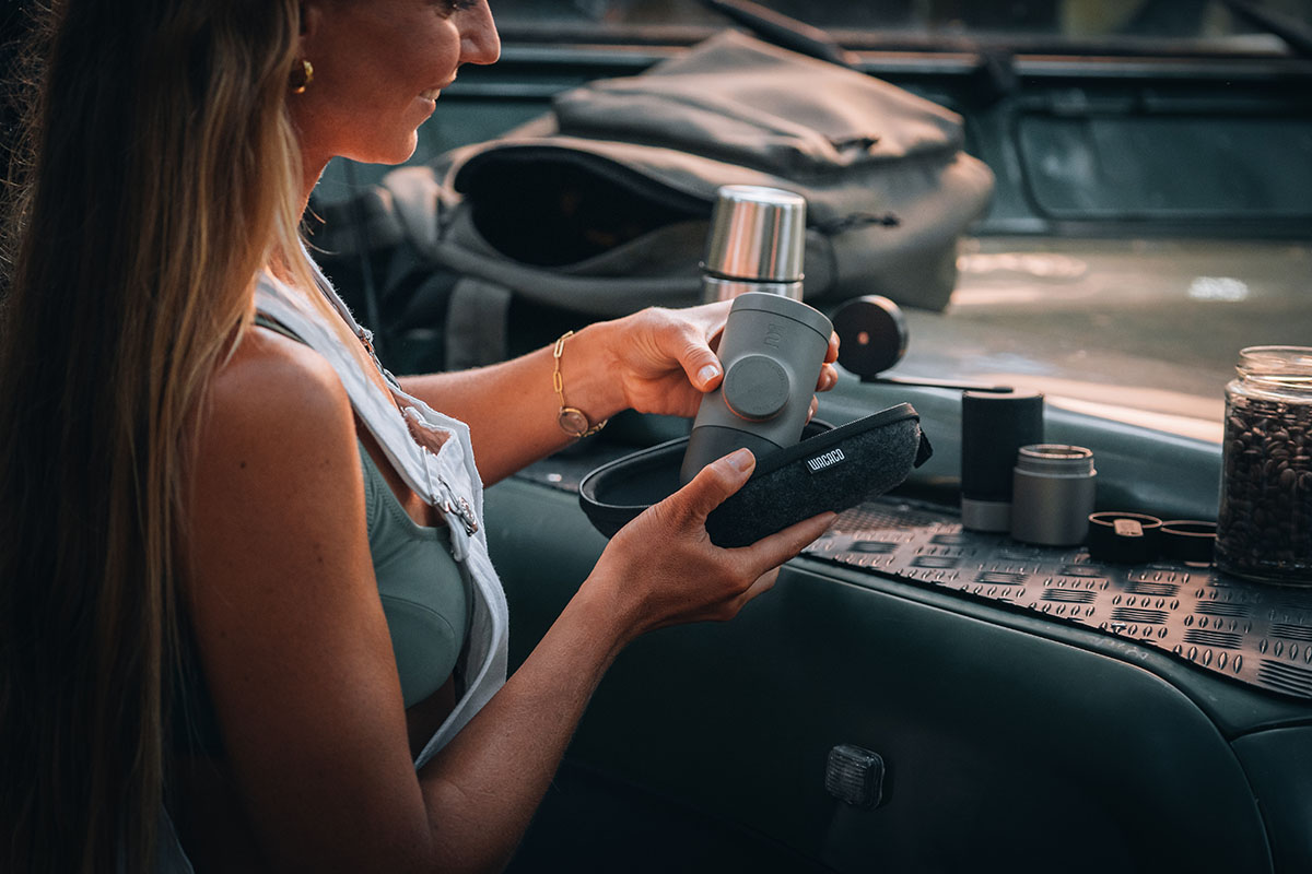 Dzięki wymiarom 60 x 71 x 125 mm podróżny ekspres do kawy MiniPresso GR2 jest na tyle mały, że zmieści się w dłoni, plecaku, a nawet tylnej kieszeni. Całkowita waga została znacznie zmniejszona do 285g , przy jednoczesnym zachowaniu solidności i trwałości. Jest zatem idealnym wyborem dla entuzjastów spędzania czasu na świeżym powietrzu , którzy szukają kompaktowego, łatwego w użyciu towarzysza podróży.