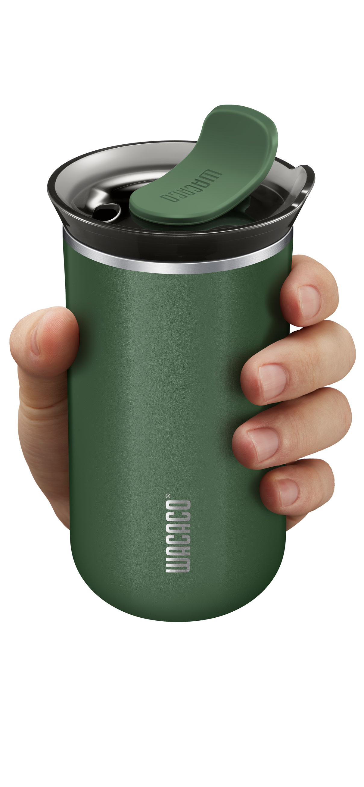 Termokubek Octaroma od Wacaco. Pojemność: 300 ml. Zmieści się do większości samochodowych uchwytów na kubek. Utrzyma temperaturę napoju do 5 godzin.